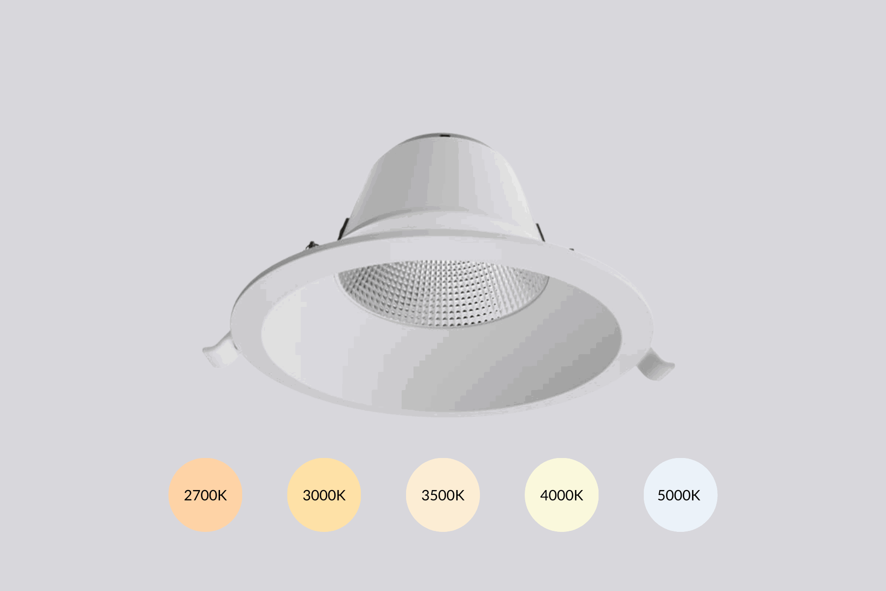 Via een geïntegreerde schakelaar in de kabel tussen armatuur en driver kan vóór montage eenvoudig één van de vijf lichtkleuren worden ingesteld: van warm wit (2700K) tot koel daglicht (5700K). Hierdoor is één product toepasbaar in meerdere situaties.
